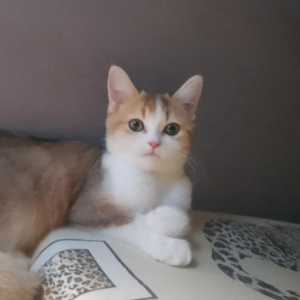Ждёт свою семью белая девочка. Появилась на свет 26 августа 2025 г. Мама Чери персиковая, папа Лёвик белый.